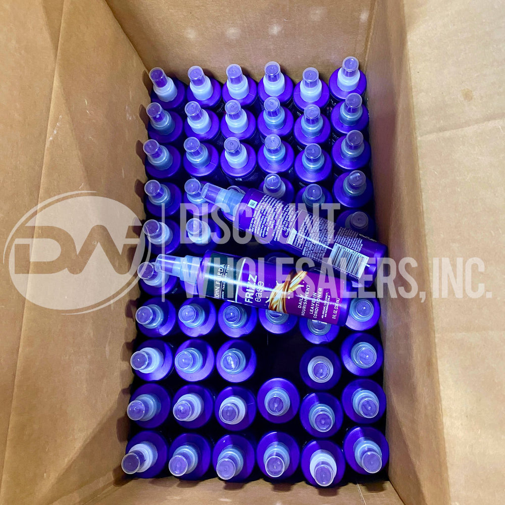 The John Frieda Frizz Ease Daily Nourishment Leave-in Conditioner 8 fl. oz. delivers lightweight moisture, detangling power, and frizz protection in one easy step. A trusted national brand, this 60-piece lot is ideal for bin stores, beauty resellers, discount stores, and online sellers looking for consistent, profitable traffic.
